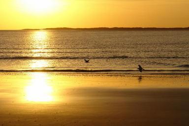 Keywords: sunset sun sea beach golden north sea back light sand wave coast reflection