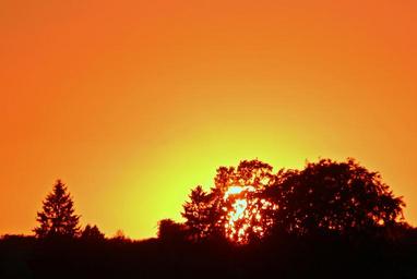 Keywords: sunset sun sky abendstimmung evening sky setting sun afterglow hidden sun behind a tree trees nature romantic landscape mood partly cloudy