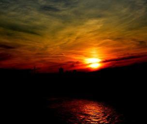 Keywords: sunset sun sky cloud water red lake port in the evening shadows