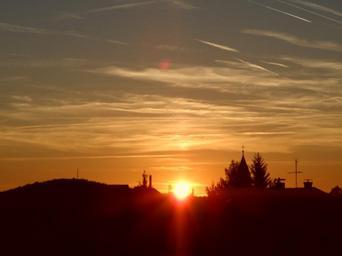 Keywords: sunset sun sky twilight nature reddish red burning evening afterglow clouds spotlight fiery