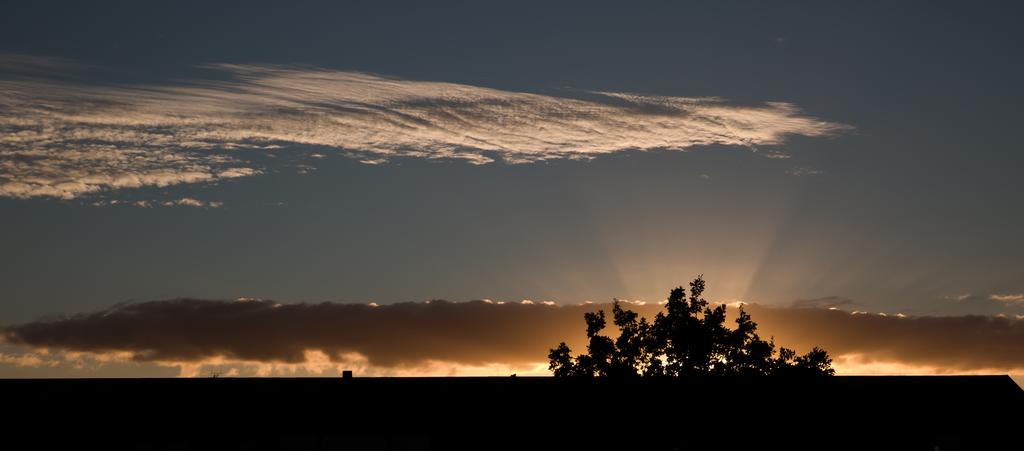 Keywords: sunset sunbeams view hald lake viborg evening denmark natural clouds sky