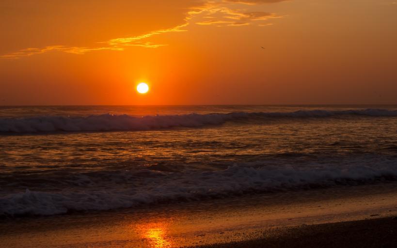 Keywords: sunset surf beach sea seascape ocean dusk evening horizon landscape colorful sky coast sand waves twilight