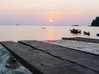 Keywords: sunset thailand wooden plank landscape twilight asia sea