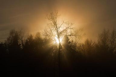 Keywords: sunset trees mist silhouette sun nature evening outdoors forest scenic