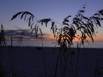 Keywords: sunset tropical sea oats beach water sky colorful relaxation nature shore paradise silhouette coast sand beach sunset gulf dusk purple pink orange yellow blue calm