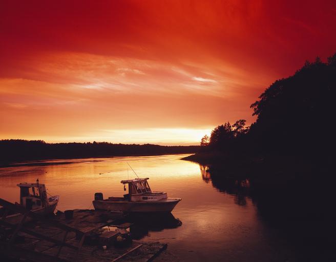 Keywords: sunset water boat lake dusk sky orange evening silhouette outdoors sunlight shore relax