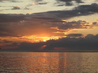 Keywords: sunset water clouds sea ocean sun glow reflection