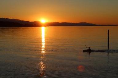 Keywords: sunset water ocean sea beach qualicum canada vancouver island canoe paddling silhouette summer