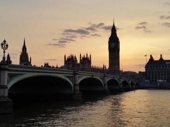 Keywords: sunset westminster bridge big ben landmark london river thames dusk