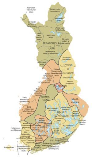 | Keywords: Suomen maisemamaakunnat.svg valid SVG Suomen maisemamaakunnat joista osa edelleen jaettu seutuihin Landskapsprovinser i Finland En del vidare delas in i regioner The Finnish landscape provinces some of which are further divided into regions own Tehty Inkscapessa Suomen rajat järvet ja joet perustuvat CIA n karttaan vuodelta 1996 Maisemamaakuntien rajat ja nimet http //www ymparisto fi/default asp node 1740 lan fi Oona Räisänen Mysid 2010-09-03 Maps of Finland SVG maps in Finnish | ||||