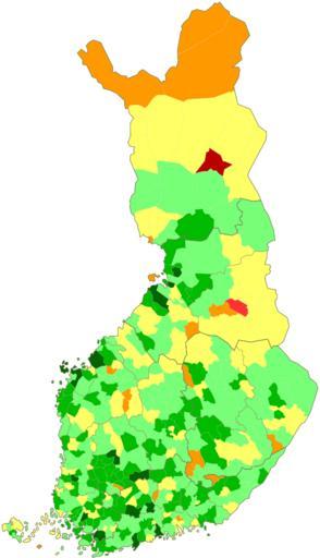 | Keywords: Suomi.kunnat.2008.lapsiperhe.svg Valitut Palat teetti TNS Gallupilla tutkimuksen jossa selvitettiin lapsiperheiden kannalta parhaat kunnat Tutkimuksessa selvitettiin mm asuntojen hintatasoa kunnan tarjoamaa koulutusta veroäyriä ja rikollisuusastetta 006600 45 0 - 50 0 00bb00 40 0 - 44 9 77ff77 35 0 - 39 9 ffff66 30 0 - 34 9 ff9900 25 0 - 29 9 ff3333 20 0 - 24 9 ff3333 15 0 - 19 9 HYVÄSSÄ KUNNASSA Asuntojen hintataso on kohtuullinen Peruskoulun lisäksi on lukio tai ammattikoulu Rikollisuusaste on alhainen Lapsiperheitä on paljon Veroäyri on alhainen Matka yli 50 000 asukkaan kaupunkiin on alle tunnin Työttömyysaste on alhainen Kaunis luonto houkuttelee myös kesämökkiläisiä Asukasmäärä on kasvussa Asukkaat ovat keskimäärin hyvätuloisia Suomi kunnat 2008 template svg http //www yle fi/uutiset/24h/id103072 html YLE Uutiset 2008-10-01 07 31 UTC derivative work Jhattara <sup> Talk · Contrib </sup> Suomi kunnat 2008 template svg Original artist Ningyou SVG-map created by Care Jhattara Suomi kunnat 2008 template svg Maps of Finland |