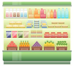 Keywords: supermarket shelf chiller supermarket chiller milk juice yogurt vegetables tomato carrot leek onion pineapple food products dairy butter cheese spread salsa packaged food grocery goods clip art supermarket retail shopping merchandise