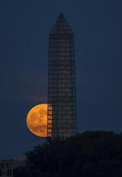 Keywords: supermoon full perigee night washington monument glowing bright light clouds district of columbia dc usa america
