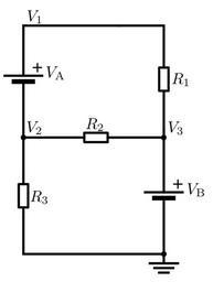 | Keywords: Supernode in circuit analysis.svg en An electrical circuit with two voltage sources Va and Vb Each voltage source is a supernode Va has two non-reference voltages whereas Vb is the trivial case where one of the nodes is the ground own Petteri Aimonen 2009-10-13 Nodal analysis |