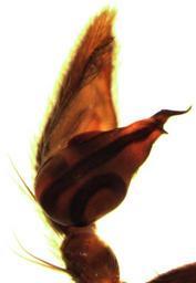 Keywords: Supunna picta (male palp).jpg en Supunna picta male palp photo taken by me S E Thorpe 2012-04-19 NEW ZEALAND AK Shakespear Regional Park pitfall trap B24 NE 1-3 2010 Supunna picta