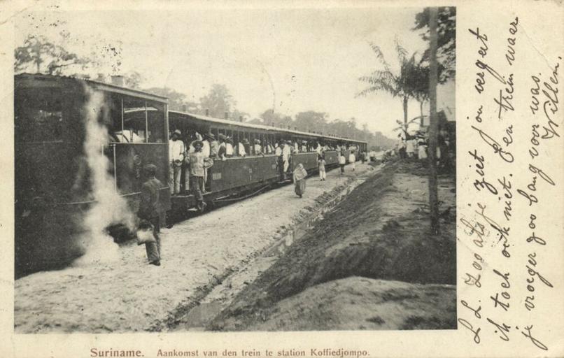 | Keywords: Suriname. Aankomst van den trein te station Koffiedjompo.jpg nl Lawaspoorweg Suriname Aankomst van den trein te station Koffiedjompo en Arrival of the Lawa steam train in Koffiedjompo 1907-09-30 http //www ebay com/itm/suriname-KOFFIEDJOMPO-Steam-Train-arrives-at-Railway-Station-1907/230977924901 _trksid p2047675 c100005 m1851 _trkparms aid 3D222007 26algo 3DSIC MBE 26ao 3D1 26asc 3D35389 26meid 3D25b93dfe9fde4dfaa1657056fc2f6c40 26pid 3D100005 26rk 3D4 26rkt 3D6 26sd 3D231053826478 eBay Eug Klein other versions PD-old-70-1923 Lawaspoorweg Paramaribo District |