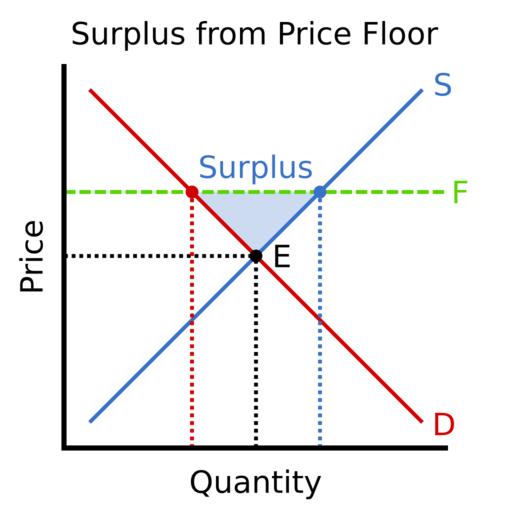 | Keywords: Surplus from Price Floor.svg An illustrative supply/demand graph showing a price floor that has caused a market surplus shaded in light blue Line D red represents the demand price vs quantity demanded line S blue represents the supply price vs quantity supplied point E black is the equilibrium point and line F green dashed represents the price floor own original text Own work based on File Price floor eqm png 1 2008-09-14 Kbolino talk Kbolino Original upload log page en wikipedia Surplus_from_Price_Floor svg 2008-09-14 08 12 Kbolino 400×400× 9721 bytes An illustrative supply/demand graph showing a price floor that has caused a market surplus Own work based on Image Price floor eqm png 14 September 2008 ~~~ Economics |
