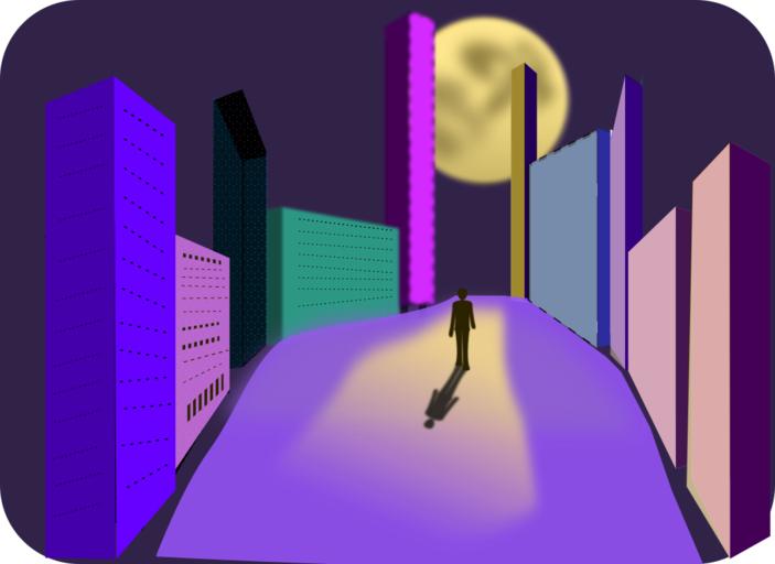 Keywords: surrealistic dream city night street town loneliness anonymity full moon