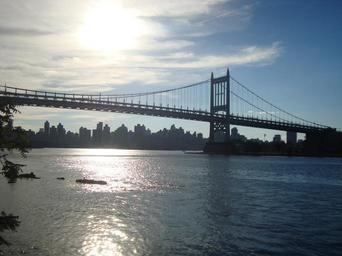 Keywords: suspension bridge bridge river water city skyline