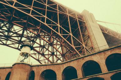 Keywords: suspension bridge girders bridge steel metal iron sky arch brick lookout