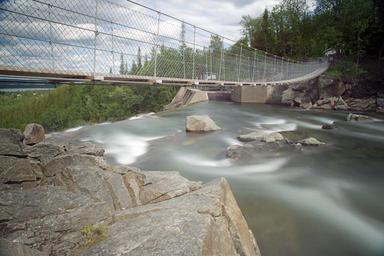 Keywords: suspension bridge sweden fjäll landscape bridge water river bach rapids waterfall