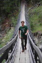Keywords: suspension bridges bridge one human male go val sinestra scuol mountains valley water climb lower engadin engadin