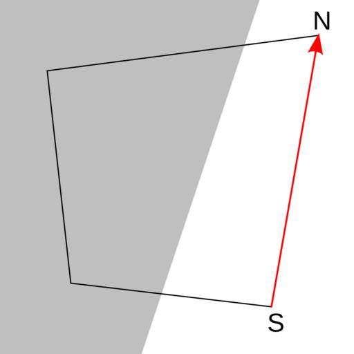 Keywords: Sutherland-Hodgman caseC.svg Single step of internal loop of Sutherland-Hodgman clipping algorithm where certain edge of convex polygon denotes halfpace grayed area -- inside Single edge SN of non-convex polygon per iteration is analyzed in this case edge SN lies outside -- nothing is saved Own 2008-03-02 Wojciech Muła public domain Sutherland-Hodgman algorithm |