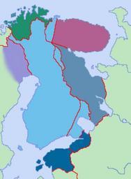 Keywords: Suur-Suomen kartta.png Map of Greater Finland Edited from Europe colour coded png 2005-04-12 own assumed Kahkonen proposed entity map Greater Finland Maps of the history of Finland Maps of proposed countries