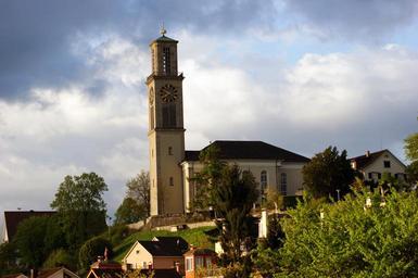 Keywords: suwayda reformed church switzerland canton of zurich sky clouds trees homes