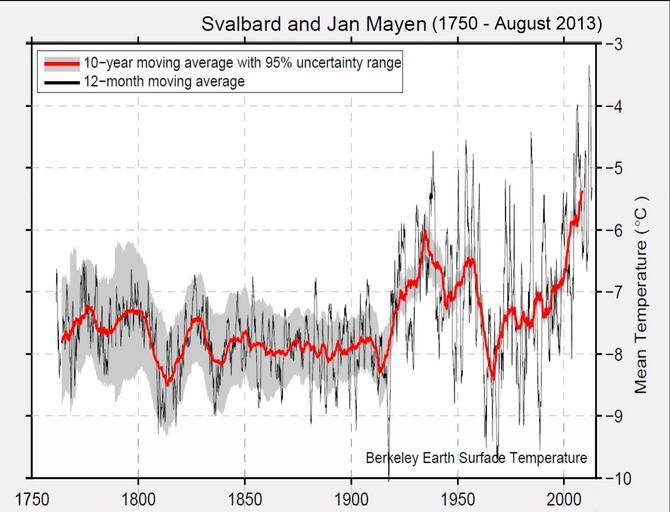 | Keywords: Svalbard Jan Mayen Temp (1750-2013)BE.jpg Mittlere Jahrestemperaturen auf Spitzbergen Inselgruppe 1750 bis August 2013 als gleitende 12 Monatsmittel 10-Jahresmittelwerte - Originaldaten aller Wetterstationen durch Berkeley Earth USA validiert und http //berkeleyearth lbl gov/auto/Regional/TAVG/Text/svalbard-and-jan-mayen-TAVG-Trend txt harmonisert http //berkeleyearth lbl gov/regions/svalbard-and-jan-mayen 2013-10-12 Berkeley Earth PD-author Berkeley-Earth Reuse Policy http //berkeleyearth org/contacthttp //berkeleyearth org/faq reuse The authors of the material available on the Berkeley Earth website www berkeleyearth org grant permission free of charge to authors readers and third parties to reproduce their materials as part of another publication or entity with proper sourcing to Berkeley Earth and by additionally providing a link to the Berkeley Earth website http //www berkeleyearth org Berkeley Earth diagrams of the Arctic Climate diagrams of Svalbard 0 |