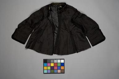 | Keywords: Svart tröja i sidenrips med foder i sidenmoiré - Livrustkammaren - 86715.tif LSH artwork sv Tillhört Karl X Gustav 1622-1660 Den stackota jackan har 6 skört d v s fram- och bakstyckena är hela och långa och endast i sidorna har man skarvat in ett svängt skörtstycke ovanför vilket ytterligare ett litet stycke sytts mellan framstyckets utdragna vinge ärmringningen och bakstycketssidosöm Jackan har knapphål hela vägen på vänster framkant d v s det finns 36 st ca 3cm långa knapphål varav de 12 nedersta inte kunnat användas då fodret på detta ställe gårut i kanten Samma antal knappar finns på högra sidan Knapparna är av trä överklädda medsvart tagel som bildar mönstret av en 6-uddig stjärna Stadkanten går fasten delvisbortklippt i framkanterna Ärmarna har sytts vardera av 2 stycken och de är öppna i denfrämre sömmen I den bakre sitter vid uppslagen 2 knapphål Endast en motsvarande knapp finns kvar på vänster ärm medan båda finns kvar på höger Utefter de öppna kanterna sitterpå understycket 21 knapphål 2 5 cm långa och sydda med svart högertvinnat silke 6stygn/cm Till dessa finns på vänster ärms överstycke 17 knappar i behåll och på höger 16st Men 4 knappar ser ut att saknas på båda ärmarna <br/>Vänster framstyckes bakre skörtkant har 19 3 cm långa knapphål och lika många knapparfinns på sidoskörtets främre del dock kan bara de 3 översta knäppas då fodret täcker påinsidan de övriga knapphålen På sidoskörtets bakre kant sitter 17 knappar svarande mot de17 knapphålen i bakstyckets främre sidokant Här kan också endast de 3 översta knäppas Mitt bak finns på vänster stycke 18 knappar till samma antal knapphål varav de 2 överstakan knäppas På den främre kanten av detta skört sitter 17 knapphål passande till likamånga knappar på högra sidostyckets kant de 3 översta kan knäppas På främre kanten avsidostycket sitter 19 knappar passande till samma antal knapphål i högra framstyckets bakresida varav de 2 översta kan knäppas Kragen är sydd av 2 snedskurna bitar av tyget som sytts ihop ungefär mitt bak Dess längdupptill är 51 cm nertill vid fastsyningen 53 cm Den är mitt fram 4 5 cm hög och har 2något mindre knappar av annan utformning än de övriga i plagget samt 2 tränsar av svartsilke Mitt bak är kragen knappt 3 5 cm hög I kragen ligger grov mörkbrun kanfas 13x12tr/cm2 som styvnad Jackan har på högra bakstycket en platt slät knapp placerad 1 5 cmfrån axelsömmen och 5 cm från kragsömmen Den är 1 5 cm i diameter och klädd med svart taft på trästomme Den har med största sannolikhet tjänat som fäste för kappbandet Jackan harett mellanfoder av grov grå linnelärft 16x16 tr/cm2 dock ej i ärmarna I dessa troligenmellanfoder endast nertill vid ärmuppslagen Dess innerfoder utgörs av svart moiré Vådbredden är minst ca 64 cm ty man kan ej härskönja spår av veck från moirébehandlingen Då vecket torde legat mitt i tyget har man häralltså klarat sig med mindre än den förmodade halva tygbredden ca 33 á 34 cm 40x26tr/cm2 Stad 0 6 cm 8 gula 4 röda 4 gula 4 röda 8 gula 1 svart tråd tuskaftsbindning Inga spår efter hängslen syns - märkligt nog - i jackan Detta kan beropå att dess foder som helhet är mycket defekt delvis söndersprättat och trasigt Jackan ärgarnerad med en 4 5 cm bred svart knypplad spets av lingarn i ett mycket smått ochhopträngt mönster Den sitter i 2 rader utefter den raka nederkanten - utan pie - påinsidan av ärmarna för att bilda de eleganta uppslagen Spetsen har sytts på så att den ihela uppslaget sidorna och nederkanten går i en veckad kant som når ca 2 cm utanförärmen Varje veck drar ca 3 ½ gång av materialet I själva den raka nederkantens del har man ovanför kantspetsen lagt en rad spets nu nästanslät blott en aning löst rynkad Beräknad spetsåtgång till en ärm ca 3 meter Ärmarna ärhopsydda så att överärmstycket lagts ovanpå underärmsstycket Innan ärmarna sytts i harärmhålen kantats med passpoal Mitt bak har höger stycke lagts på vänster och i sidorna harbakstyckena lagts på de främre Höger ärm hade lossnat helt men efter fotografering syttsfast 1955 original caption Svart tröja i sidenrips med foder i sidenmoiré LRK 19023<br/> Nyckelord Karl X Gustav Tröja Jacka Svarta Siden 1600-tal Dräkt Föremålsbild - 1654 1660 silk Färg svart d1 - dräkt - yttermaterial material siden - silk Färg svart d2 - dräkt - foder material siden size mm 600 mitt fram size mm 580 mitt fram size mm 650 rygg mitt bak size mm 430 rygg size mm 340 skört fram size mm 320 skört sida size mm 290 skört bak size mm 150 axel size mm 590 ärm size mm 490 ärm size mm 395 ärm nedtill size mm 330 ärmslits från ärmhål och nedåt size mm 170 sprund i ärmens nedkant LRK Karl X Gustav av Sverige place of origin original filename lm_dig6517_19023 55558 inventory number LRK 19023 86715 CC-BY-SA Matti Östling <gallery caption Different images of same object > File Jacka av svart sidenrips - Livrustkammaren - 78654 tif File Svart tröja i sidenrips med foder i sidenmoiré - Livrustkammaren - 86714 tif </gallery> Matti Östling Charles X Gustav of Sweden Sweaters Jackets Silk clothing Clothing in Livrustkammaren Shirts Media contributed by LSH unmatched material Media contributed by LSH dim-with multiple size templates Media contributed by LSH unmatched keyword Color images from Livrustkammaren Media contributed by LSH 2013-10 |