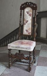 | Keywords: Svarvad stol, 1600-tal - Skoklosters slott - 103806.tif LSH artwork sv Troligen Sverige 1600-talets slut Svarvade ben av furu slåar kryss och stolpar Snidad framslå och ryggöverstycke Stoppad sits och ryggbricka klädd med ljusröd sidenbrokad med blom- och bladmönster 1890-tal ev tidigare klänningstyg silkefrans Brokaden från 1800-talets slut På ryggens baksida målat 34 original caption Svarvad stol 1600-tal <br/> Nyckelord Föremålsbild Stolar Svarvad - 1675 1700 size mm 400 460 1220 SKO place of origin original filename sm_dig11724 21908 inventory number SKO 594 103806 CC-BY-SA Jenny Bergensten Chairs Lathes Jenny Bergensten Media contributed by LSH 2015-11 |