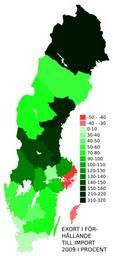 | Keywords: Svenska läns export i förhållande till import 09.svg sv Svenska läns export i förhållande till import 2009 Ett negativt värde innebär att länet importerar mer än det exporterar http //www regeringen se/content/1/c6/14/84/94/43e2a84c pdf Länens totala export 2008 och 2009 miljarder SEK och http //www regeringen se/content/1/c6/14/84/94/d416f71f pdf Länens totala import 2002-2009 miljarder SE <br>Map from File SWE-Map Län svg by Lokal_Profil Marcusroos 2010-06-29 SVG maps of Sweden Economic maps of Sweden |
