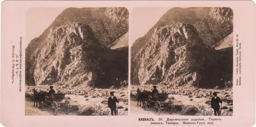 | Keywords: Svet. Caucasus. 051. Darial canion. Tamara fortress.jpg en Darial canion Tamara fortress 1910 Stereoscopic collection of the SVET publishing author PD-old-100 Uploaded with UploadWizard Darial Gorge Stereo cards by SVET publishing Queen Tamara fortress 1910 in Georgia |