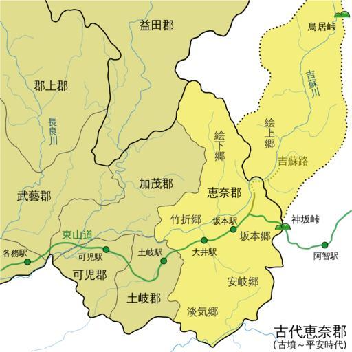 Keywords: 古代恵奈郡.svg Ancient Ena Gifu Pref Japan 古代 中世の恵奈郡 own 2009-08 takami torao Koiroha <span class signature-talk >talk</span> 20 17 28 August 2009 UTC Own work all rights released Public domain Nakatsugawa Gifu