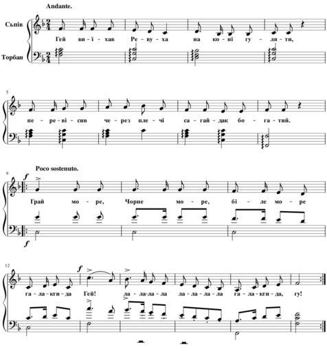 | Keywords: Сьпів Ревухи.svg uk Ілюст ація до статті иколи Лисенка а одні музичні ст ументи на Вк аїнї оти думки Сьпів Ревухи 1894-03-27 Зо я часопис 1894 06 с 137 Г его Відо т other versions Часопис Зо я 1894 06 pdf Hidden background ECECEC; white;color black border 1px grey solid; padding 2px Created by MuseScore <nowiki> < xml version 1 0 encoding UTF-8 > <museScore version 2 06 > <programVersion>2 0 2</programVersion> <programRevision>f51dc11</programRevision> <Score> <LayerTag id 0 tag default ></LayerTag> <currentLayer>0</currentLayer> <Synthesizer> </Synthesizer> <Division>480</Division> <Style> <TextStyle> <halign>center</halign> <valign>top</valign> <xoffset>0</xoffset> <yoffset>10</yoffset> <offsetType>absolute</offsetType> <name>Subtitle</name> <family>FreeSerif</family> <size>14</size> <bold>1</bold> </TextStyle> <TextStyle> <halign>right</halign> <valign>bottom</valign> <offsetType>absolute</offsetType> <name>Composer</name> <family>FreeSerif</family> <size>12</size> <bold>1</bold> </TextStyle> <TextStyle> <halign>left</halign> <valign>bottom</valign> <offsetType>absolute</offsetType> <name>Lyricist</name> <family>FreeSerif</family> <size>12</size> <bold>1</bold> </TextStyle> <TextStyle> <halign>center</halign> <valign>baseline</valign> <xoffset>0</xoffset> <yoffset>6</yoffset> <offsetType>spatium</offsetType> <name>Lyrics Odd Lines</name> <family>FreeSerif</family> <size>11</size> <bold>1</bold> <sizeIsSpatiumDependent>1</sizeIsSpatiumDependent> </TextStyle> <TextStyle> <halign>right</halign> <valign>center</valign> <offsetType>absolute</offsetType> <name>Instrument Name Long </name> <family>FreeSerif</family> <size>12</size> <bold>1</bold> <sizeIsSpatiumDependent>1</sizeIsSpatiumDependent> </TextStyle> <page-layout> <page-height>1281 26</page-height> <page-width>1190 55</page-width> <page-margins type both > <left-margin>5 66929</left-margin> <right-margin>5 66929</right-margin> <top-margin>0</top-margin> <bottom-margin>0</bottom-margin> </page-margins> </page-layout> <Spatium>1 764</Spatium> </Style> <showInvisible>1</showInvisible> <showUnprintable>1</showUnprintable> <showFrames>1</showFrames> <showMargins>0</showMargins> <metaTag name arranger ></metaTag> <metaTag name composer >Г его Відо т</metaTag> <metaTag name copyright ></metaTag> <metaTag name creationDate >2015-11-25</metaTag> <metaTag name lyricist >Г его Відо т</metaTag> <metaTag name movementNumber ></metaTag> <metaTag name movementTitle ></metaTag> <metaTag name platform >Microsoft Windows</metaTag> <metaTag name poet >Г его Відо т</metaTag> <metaTag name source >Часопис Зо я 1894 ; 05 с 113; 06 с 137</metaTag> <metaTag name translator ></metaTag> <metaTag name workNumber ></metaTag> <metaTag name workTitle >Сьпів Ревухи Сьпів Ревуцький </metaTag> <PageList> <Page> <System> </System> <System> </System> <System> </System> <System> </System> </Page> </PageList> <Part> <Staff id 1 > <StaffType group pitched > <name>stdNormal</name> </StaffType> <bracket type 1 span 2 /> </Staff> <trackName>Voice</trackName> <Instrument> <longName>Сьпів</longName> <trackName>Voice</trackName> <minPitchP>36</minPitchP> <maxPitchP>94</maxPitchP> <minPitchA>40</minPitchA> <maxPitchA>79</maxPitchA> <instrumentId>voice vocals</instrumentId> <Articulation> <velocity>100</velocity> <gateTime>100</gateTime> </Articulation> <Articulation name staccatissimo > <velocity>100</velocity> <gateTime>33</gateTime> </Articulation> <Articulation name staccato > <velocity>100</velocity> <gateTime>50</gateTime> </Articulation> <Articulation name portato > <velocity>100</velocity> <gateTime>67</gateTime> </Articulation> <Articulation name tenuto > <velocity>100</velocity> <gateTime>100</gateTime> </Articulation> <Articulation name marcato > <velocity>120</velocity> <gateTime>67</gateTime> </Articulation> <Articulation name sforzato > <velocity>120</velocity> <gateTime>100</gateTime> </Articulation> <Channel> <program value 52 /> <synti>Fluid</synti> </Channel> </Instrument> </Part> <Part> <Staff id 2 > <StaffType group pitched > <name>stdNormal</name> </StaffType> <defaultClef>G8vb</defaultClef> <bracket type -1 span 0 /> </Staff> <trackName>Acoustic Guitar</trackName> <Instrument> <longName>То бан</longName> <trackName>Acoustic Guitar</trackName> <minPitchP>40</minPitchP> <maxPitchP>83</maxPitchP> <minPitchA>40</minPitchA> <maxPitchA>83</maxPitchA> <instrumentId>pluck guitar acoustic</instrumentId> <clef>G8vb</clef> <StringData> <frets>19</frets> <string>40</string> <string>45</string> <string>50</string> <string>55</string> <string>59</string> <string>64</string> </StringData> <Articulation> <velocity>100</velocity> <gateTime>100</gateTime> </Articulation> <Articulation name staccatissimo > <velocity>100</velocity> <gateTime>33</gateTime> </Articulation> <Articulation name staccato > <velocity>100</velocity> <gateTime>50</gateTime> </Articulation> <Articulation name portato > <velocity>100</velocity> <gateTime>67</gateTime> </Articulation> <Articulation name tenuto > <velocity>100</velocity> <gateTime>100</gateTime> </Articulation> <Articulation name marcato > <velocity>120</velocity> <gateTime>67</gateTime> </Articulation> <Articulation name sforzato > <velocity>120</velocity> <gateTime>100</gateTime> </Articulation> <Channel> <program value 25 /> <synti>Fluid</synti> </Channel> </Instrument> </Part> <Staff id 1 > <Measure number 1 > <KeySig> <accidental>-1</accidental> </KeySig> <TimeSig> <sigN>2</sigN> <sigD>4</sigD> <showCourtesySig>1</showCourtesySig> </TimeSig> <Tempo> <tempo>1 16667</tempo> <text>Andante </text> </Tempo> <Chord> <dots>1</dots> <durationType>eighth</durationType> <Lyrics> <text>Гей</text> </Lyrics> <Note> <pitch>65</pitch> <tpc>13</tpc> </Note> </Chord> <Chord> <BeamMode>no</BeamMode> <durationType>16th</durationType> <Lyrics> <syllab