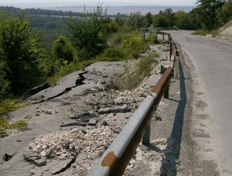 Keywords: Svlichane.jpg en Svlichane bg Свличане по пътя Вехтово - Д умево own Izvora 2009-07-19 Landslides Roads in Bulgaria Nature of Bulgaria Scarps mass wasting