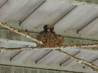 Keywords: Swallow nest 1.jpg en Swallow's nest and juvenile Hirundo rustica nests with chicks