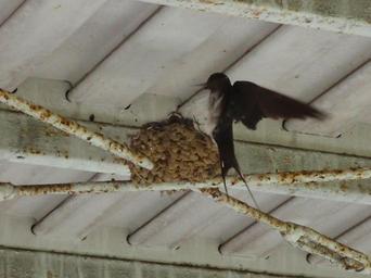 Keywords: Swallow nest 2.jpg en Swallow's nest and juvenile Hirundo rustica nests with chicks Hirundo rustica in flight
