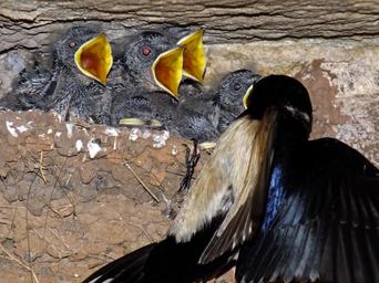 Keywords: Swallow feeding chicks at the nest. bird birds chicks swallow birdwatcher