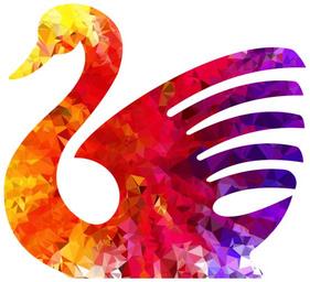 Keywords: swan bird animal aquatic water swim fly flight stylized topaz ruby sapphire gem colorful prismatic chromatic rainbow abstract geometric art