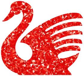 Keywords: swan bird animal aquatic water swim fly flight stylized ruby gem polygon colorful prismatic chromatic rainbow abstract geometric art