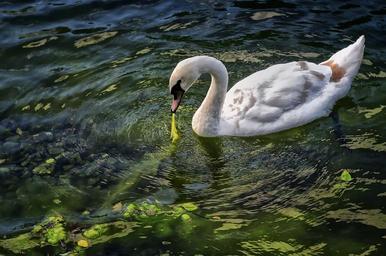 Keywords: swan bird animals water lake nature majestic alga food pond