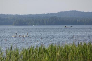 Keywords: swan boat the boatman peace silence lake reed beach l the wind autumn finnish blue sky nature rowing boat landscape water lake in finland scenic nature photo