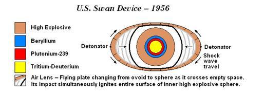 Keywords: Swan Boosted Fission.png Schematic drawing of the basic elements of the fusion-boosted Swan nuclear device Originally uploaded as a gif image Own 2007-11-11 Boosting U S _Swan_Device svg Nuclear weapon schemas Swan nuclear explosive