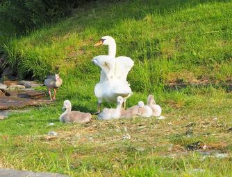 Keywords: swan chicks family swans bird young animals cute water white waterfowl
