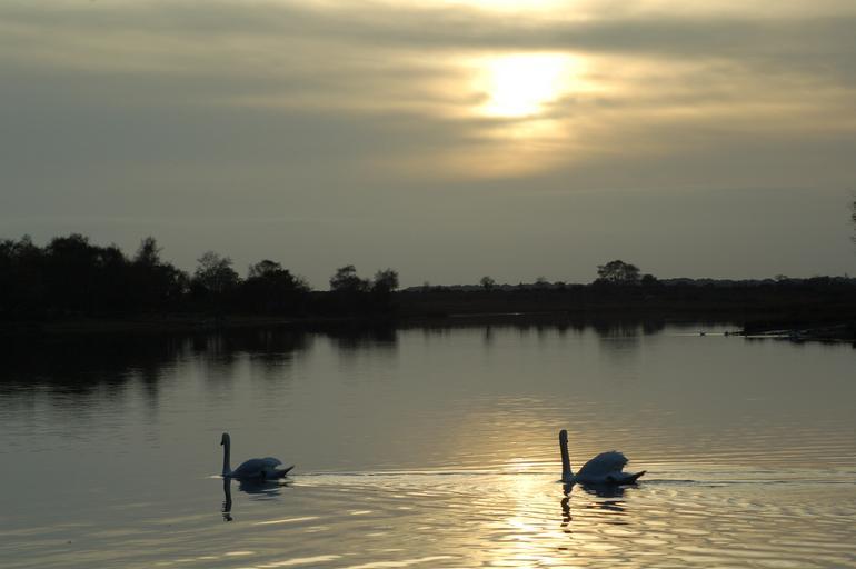 Keywords: swan lake sunset reflection bird calm graceful outdoor beautiful wildlife water nature outdoors landscape swimming aquatic