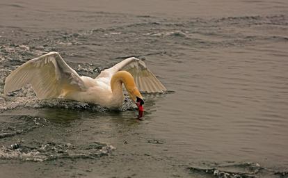 Keywords: swan landing water nature fly sea threatening feather plumage waterfowl animal world bird start wave