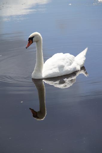 Keywords: swan mute swan water bird swim mirroring mirrored water lake pond mirror
