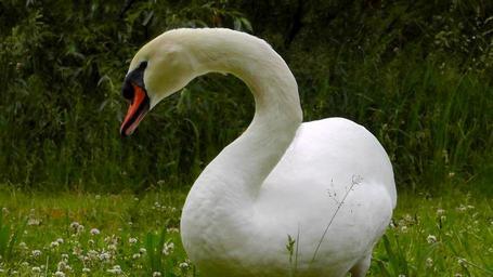 Keywords: swan posing mute swan bird nature white river swans water bird elegant beautiful animal meadow green grass bill wildlife photography spring dress poultry wing feather